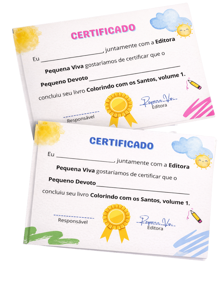 Preparamos 2 certificados especiais para que você assine e certifique sua criança quando ela concluir o livro e guarde com muito carinho essa conquista.