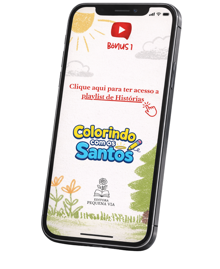 Acesso exclusivo as histórias narradas dos 10 santos, com linguagem adaptada para sua criança, para que ela ouça e aprenda enquanto colore.