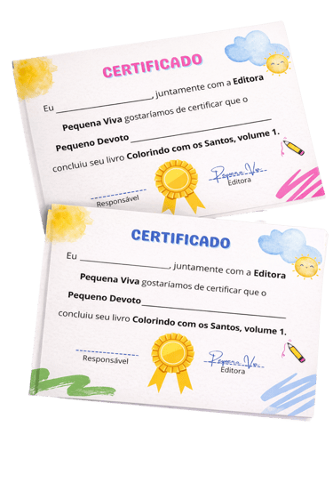Preparamos 2 certificados especiais para que você assine e certifique sua criança quando ela concluir o livro e guarde com muito carinho essa conquista.