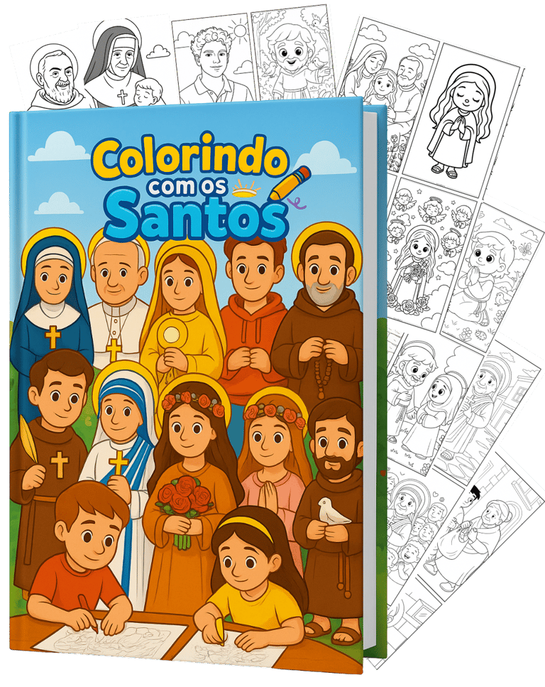 Um caminho leve, que já ajudou muitas mães e pais católicos a trocarem as telas por momentos de amor, conversa e aprendizado — despertando a fé da criança a cada página colorida.